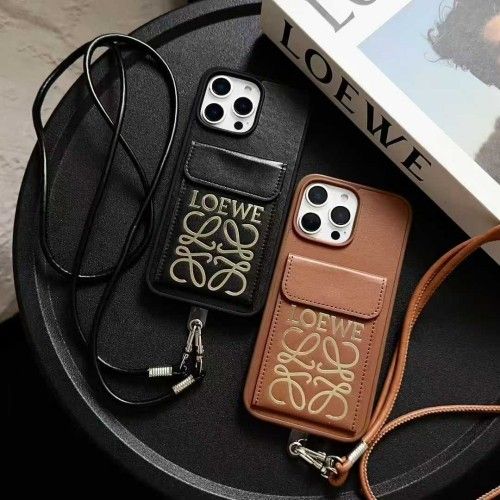 IPHONE17 PRO MAXケース ロエベ LOEWE スマホ アイフォン16pro 15promaxカバー ネックストラップ式 おしゃれ カード収納