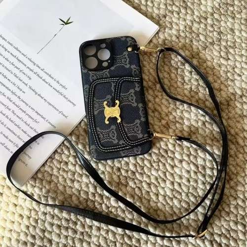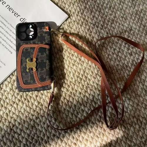 IPhone16pro 17proケース セリーヌ ショルダー iphone16plus 15promaxカバー CELINE 財布付き アイフォン14プロ携帯けーす カード収納